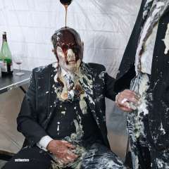 Pies with Company had a giant chocolate cake smooshed in his face by SeymourTheClown